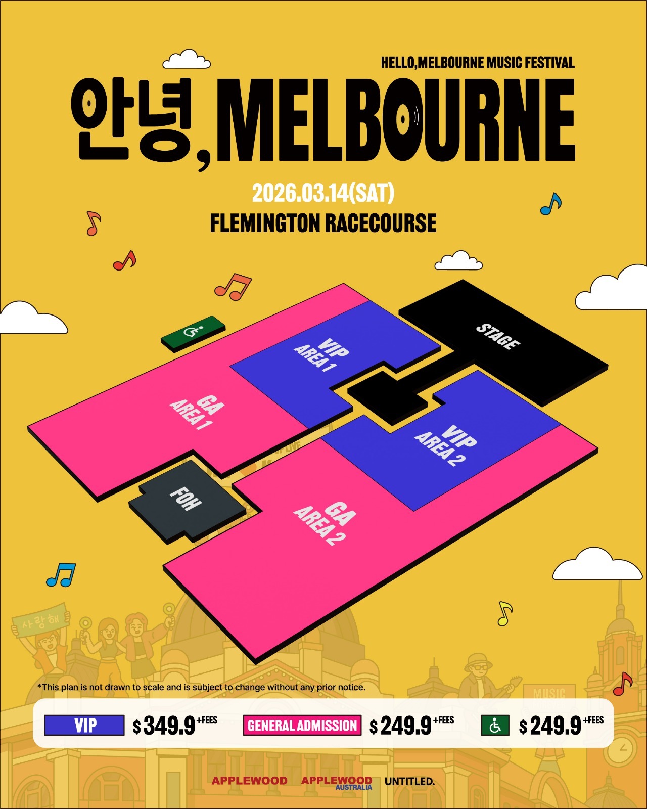 APPLEWOOD, one of Asia’s most trusted global concert promoters, has announced that 안녕, MELBOURNE (“Hello Melbourne”) will take place on March 14 at Flemington Racecourse in Melbourne.