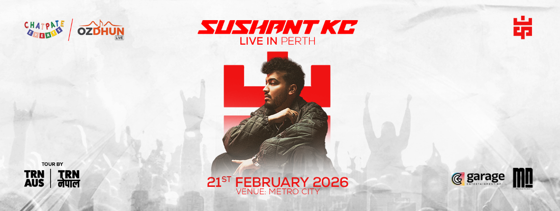 Get ready to experience an unforgettable night as Sushant KC – Nepal’s most streamed sensation and global superstar – graces the iconic Metro City Concert Club in Perth! Mark your calendars for February 21st, 2026 at 7:30 PM and celebrate weekend in electrifying style! 💝