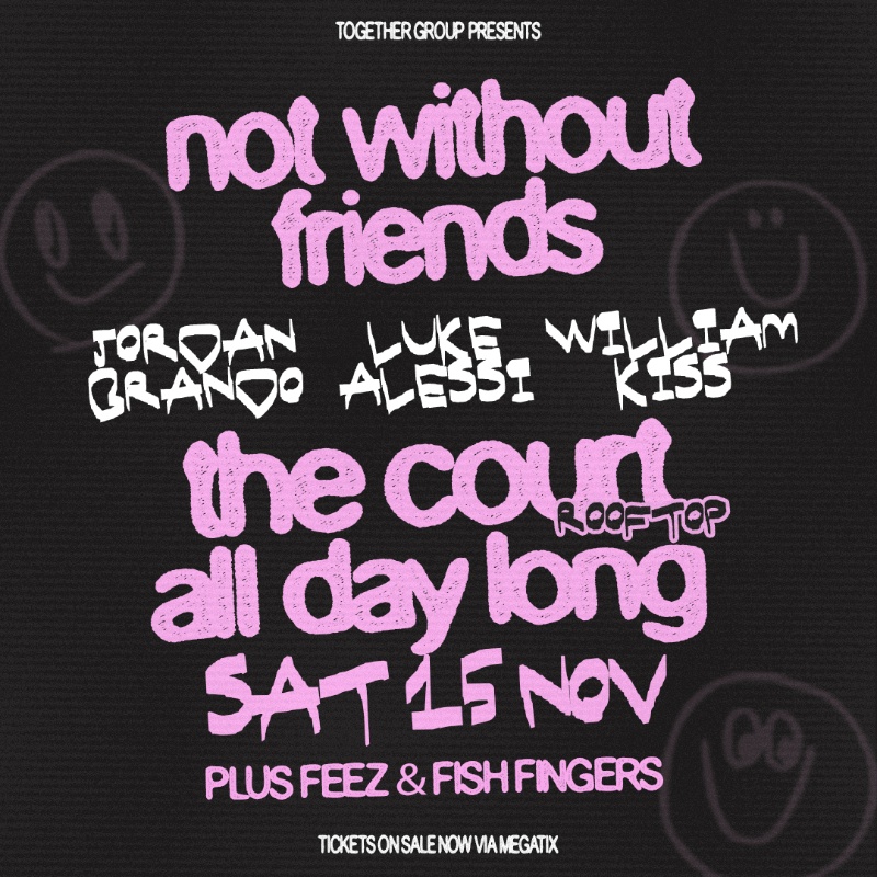 Not Without Friends (William Kiss, Luke Alessi, Jordan Brando) make their Perth debut this Saturday 15 November - presented by Together Group.